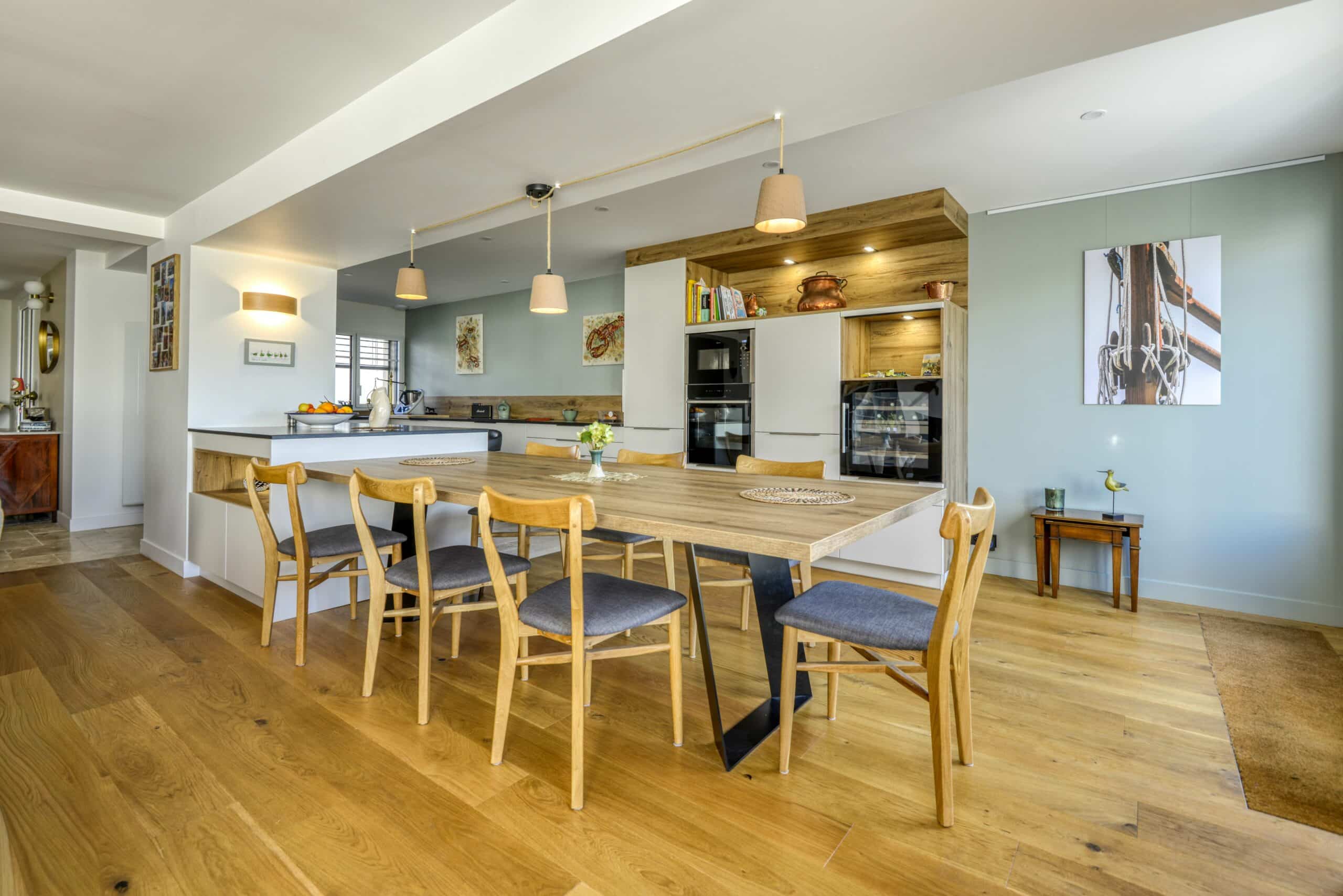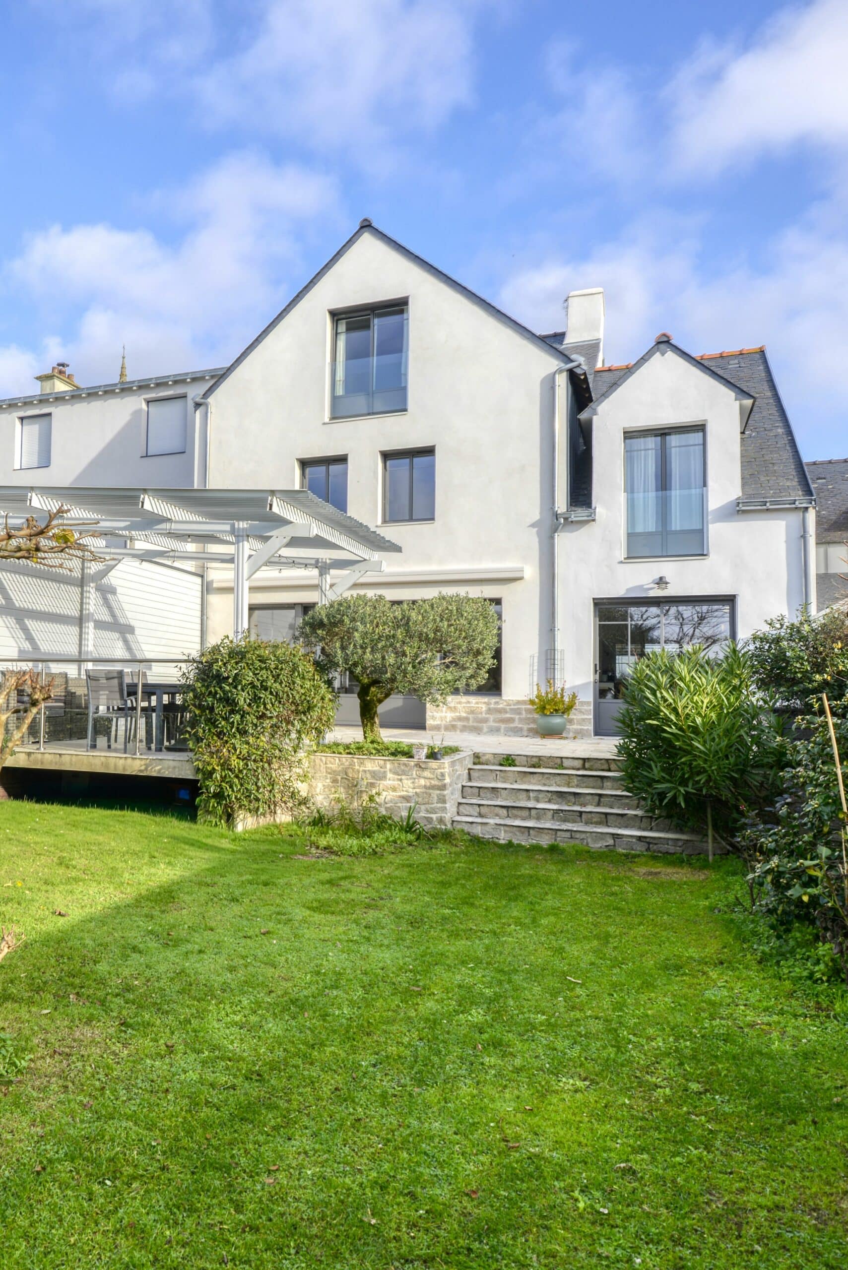Challenge : rénover la maison et transformer l’espace d’une ancienne poissonnerie, connue historiquement. Agrandissement par surélévation des deux façades sur rue et sur jardin pour pouvoir accueillir une grande famille.